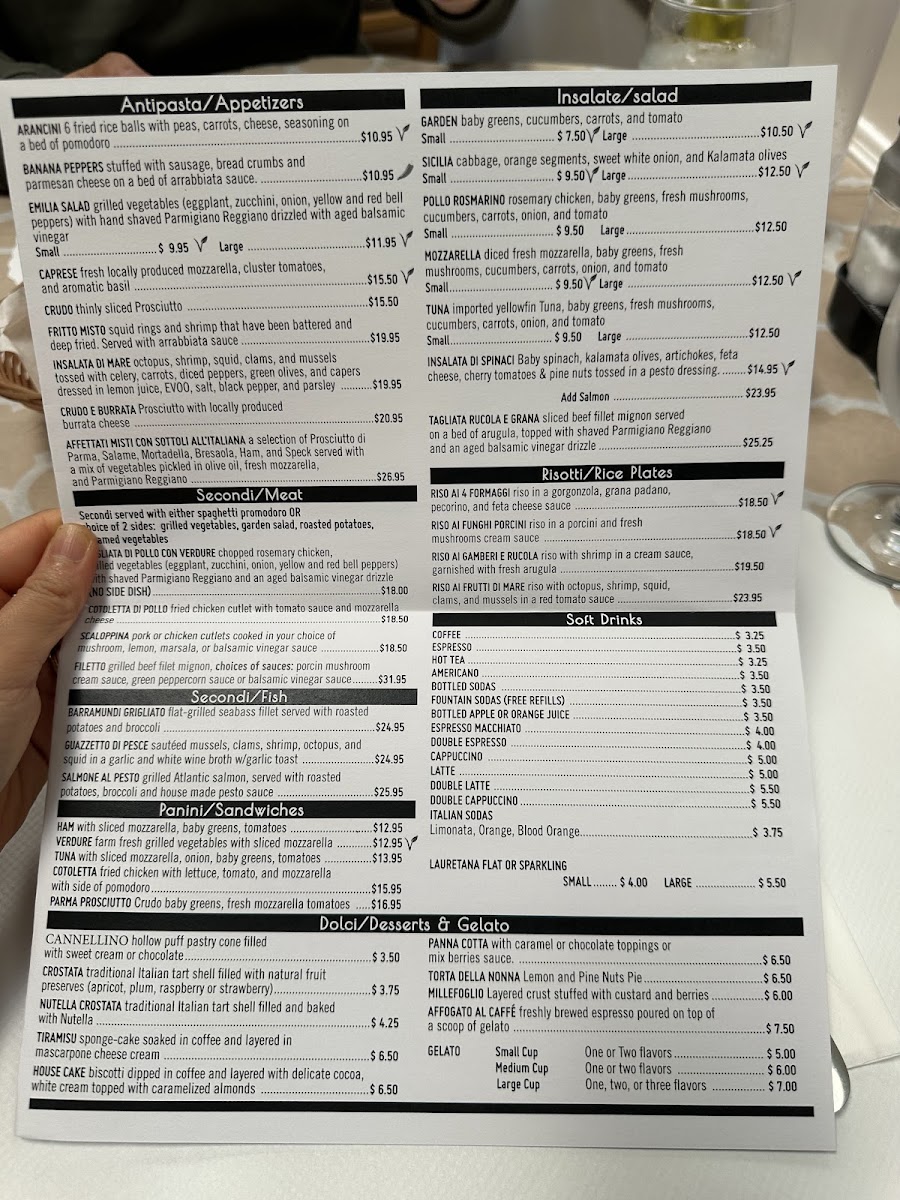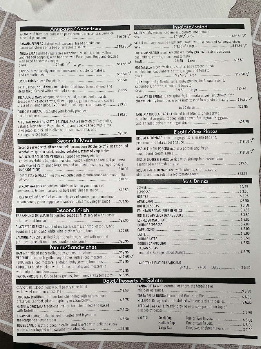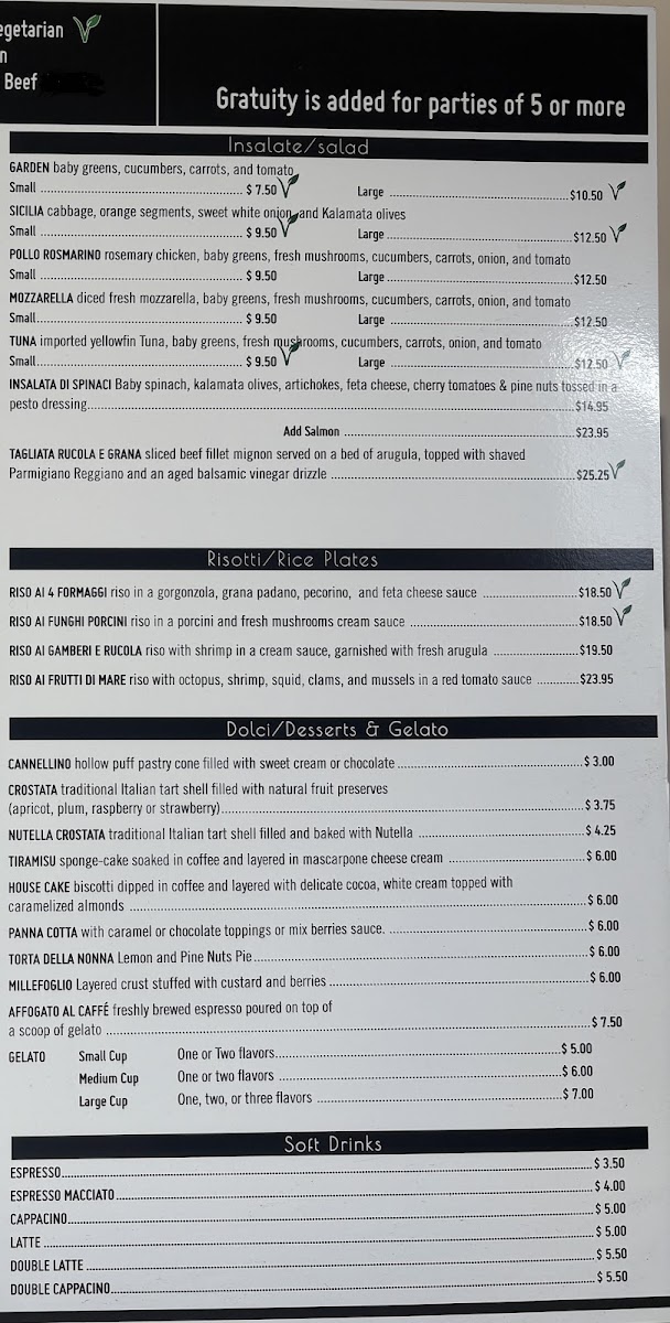 - Pizzas: Choose from signature offerings like the 4 Formaggi Pizza, loaded with a creamy blend of cheeses, or the robust Gitana Pizza, featuring fresh mushrooms and Parmigiano Reggiano.